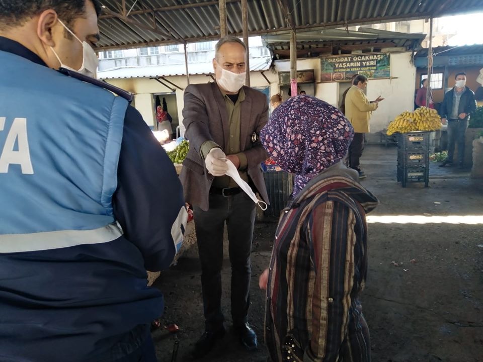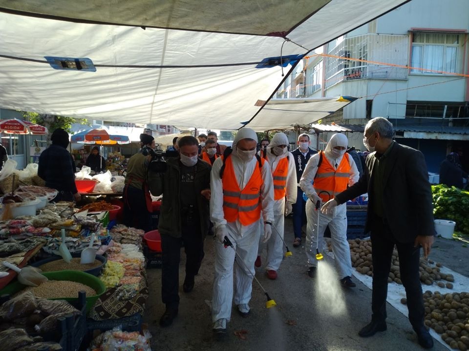 Cumartesi pazar yeri Dezenfekte çalışmaları, Pazar esnaflarına ve vatandaşlara MASKE ve eldiven dağıtımı yapılıp, pazar yerinin belirli noktalarına stantlı dezenfeksiyon cihazı takılıp alıverişe gelen vatandaşlarımızın ve pazar esnaflarımızın hijyen ortamda alışveriş yapmalarını sağlandı. Ayrıca Pazar esnaflarının ve alışveriş için gelen vatandaşların ateşleri ölçüldü.