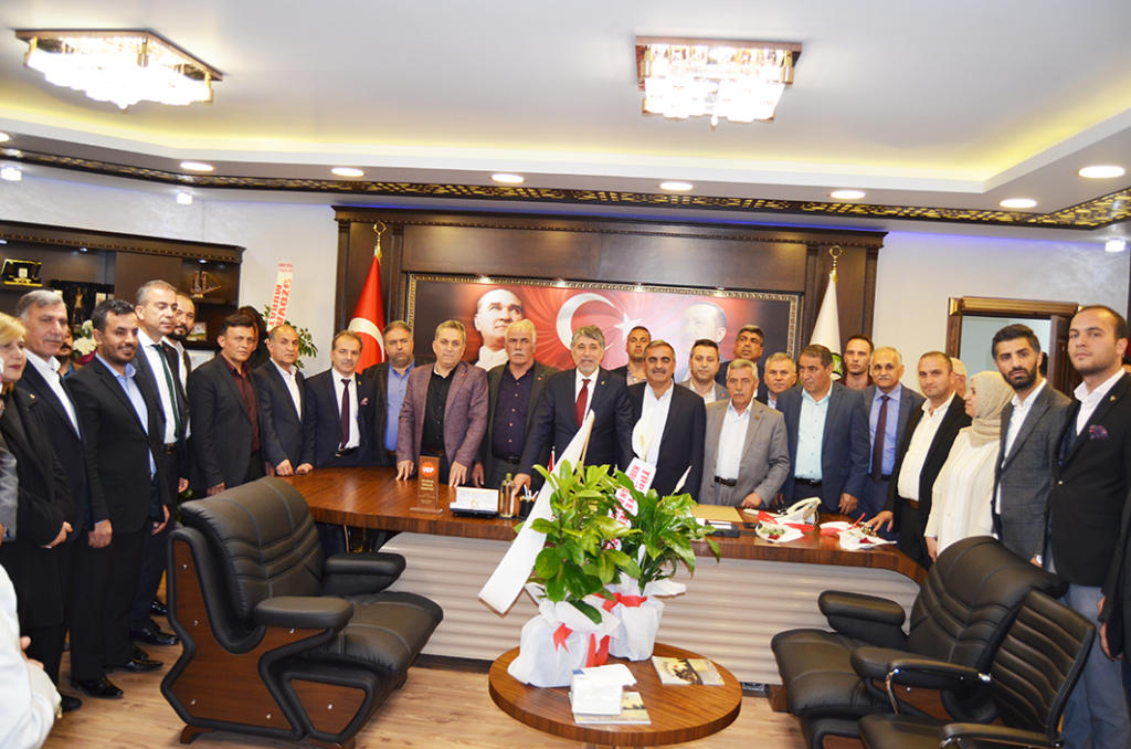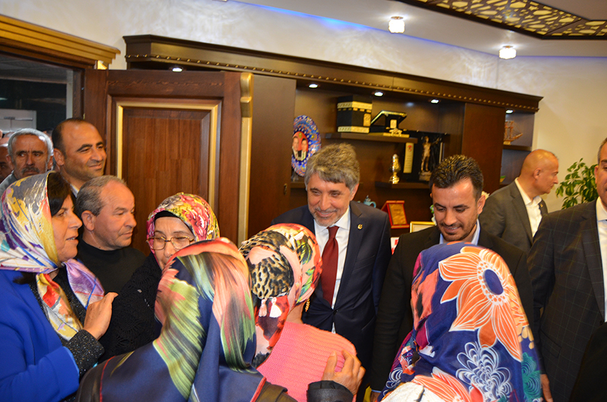 Beraberinde Ak Parti İlçe Başkanı Ömer Erdal Çelik, MHP İlçe Başkanı Hamza Cirnooğlu, her iki partinin gençlik ve kadın kolları başkanları ve yeni meclis üyeleriyle birlikte Belediye hizmet binasına gelen Ayhan Yavuz, burada bekleyen vatandaşların elini sıktı.
