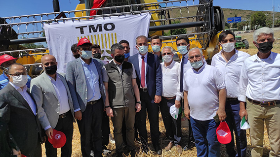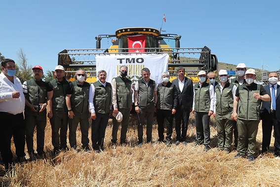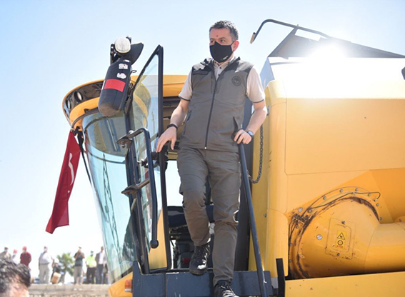 Bakan Pakdemirli daha sonra biçerdövere binerek buğday hasadını gerçekleştirdi.