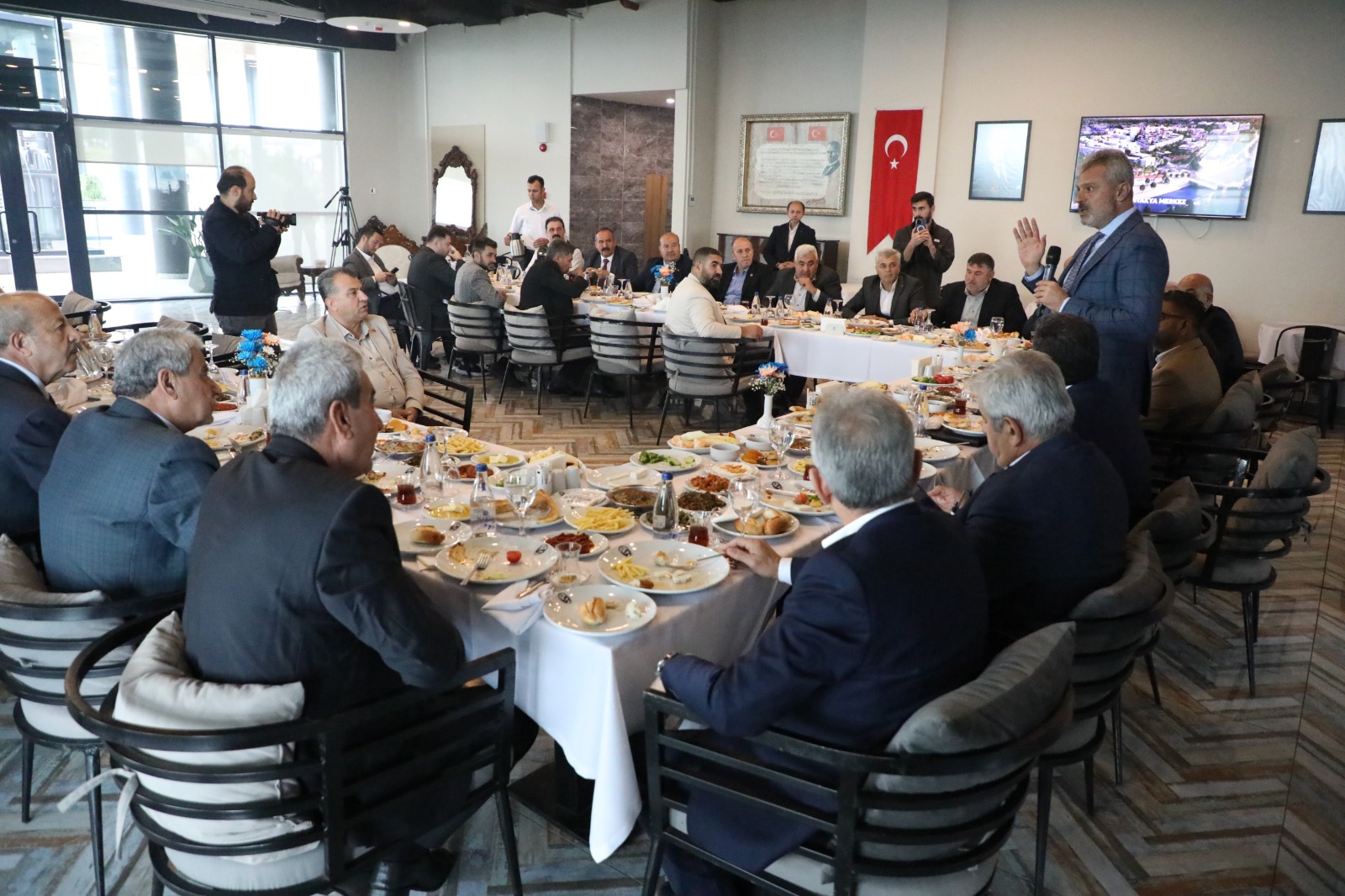 Hatay Büyükşehir Belediye Başkanı Mehmet Öntürk, Muhtarlar Dairesi Başkanlığı tarafından organize edilen toplantıda 15 İlçenin muhtarlar derneği temsilcileri ile bir araya gelerek ulaşım, altyapı, çevre sağlığı, sosyal ve kültürel alanlarda yapılması planlanan hizmetler ve mahallelerin ihtiyaçları ile ilgili fikir alışverişinde bulundu.
