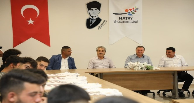 Hatayspor'un başarısı hakkında gençlerle sohbet eden Başkan Lütfü Savaş, buluşmanın sonunda gençlere imzaladığı Hatayspor formasını hediye etti.