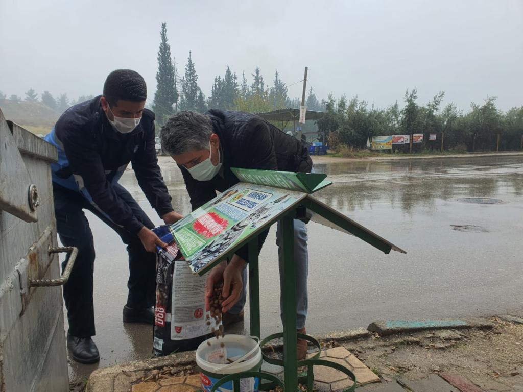 Kırıkhan Belediye Başkanı Ayhan Yavuz soğuk, yağmurlu Kış mevsimine ve hafta sonu olmasına rağmen sokak hayvanlarına sahip çıkmaya devam ediyor.