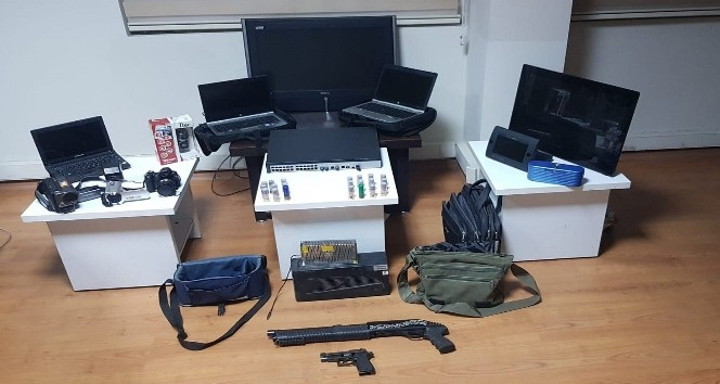 İkamette yapılan aramada çalıntı olduğu değerlendirilen 1 adet seri numarasız pompalı tüfek, 1 adet namlusu açılmış kurusıkı tabanca, 4 adet kamera, 3 adet dizüstü bilgisayar, 1 adet televizyon, 1 adet masaüstü bilgisayar, çeşitli elektronik eşya ele geçirildi.
