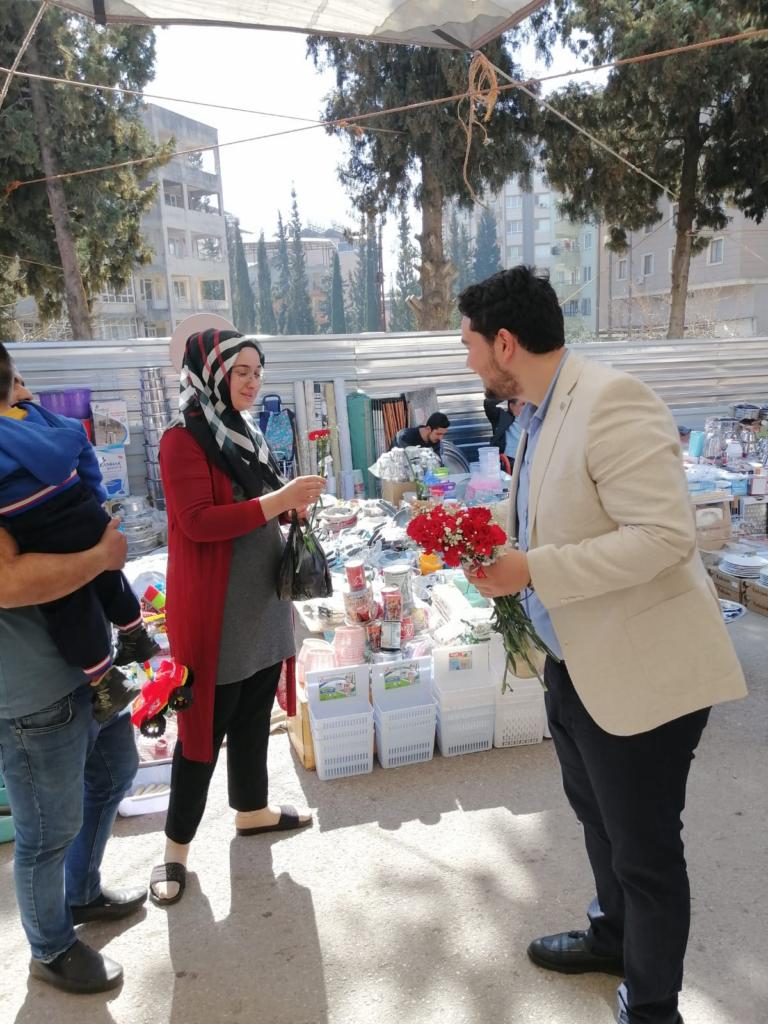 CHP Kırıkhan İlçe Gençlik Kolları Başkanı Ömer Ulaş Hırfanoğlu ve beraberindeki üyeler, 8 Mart Dünya Emekçi Kadınlar Günü dolayısı ile Hastane Pazar Pazarı ve esnafını ziyaret ederek, kadınlara karanfil hediye ettiler.
