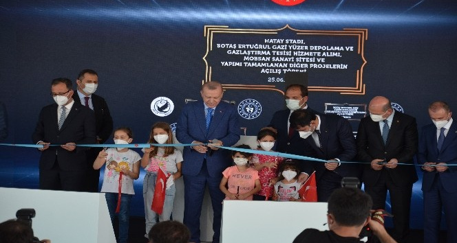 Cumhurbaşkanı Erdoğan, Hatay Stadı, BOTAŞ Ertuğrul Gazi Yüzer Depolama ve Gazlaştırma Tesisi Hizmete Alımı, MOBSAN Sanayi Sitesi ve yapımı tamamlanan diğer projelerin açılış törenine katıldı.