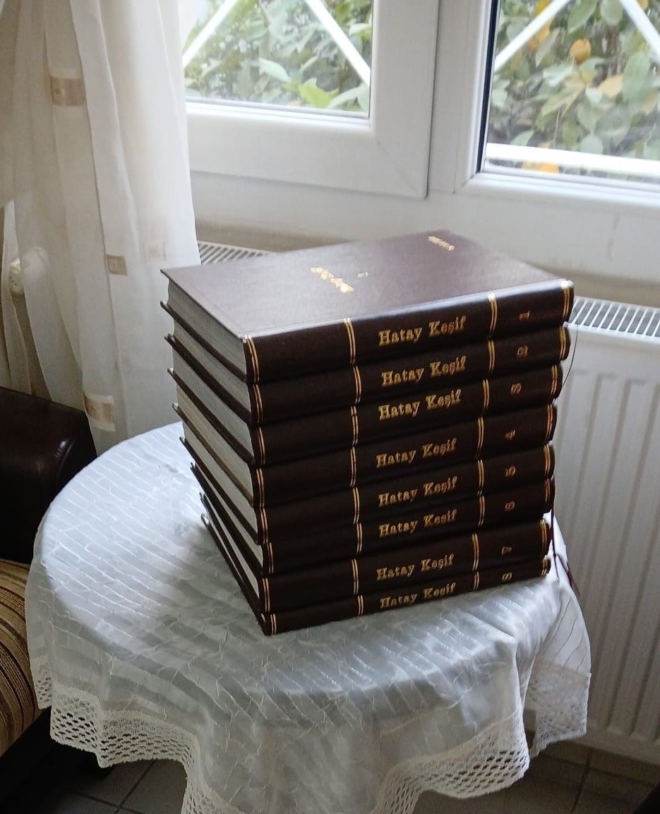 Akşam kardeşim Osman’ı aradım ve durumu anlattım, ciltçinin kartvizitini gönderdim, Antakya’ya gittiğinde adresinden almasını söyledim, o da “olur abi, uygun bir zamanda gider alırım” dedi. Ve daha sonra kardeşim Antakya’ya giderek dergi ciltlerini teslim aldı. Böylece umudumu yitirdiğim bir zamanda depremden önceki Hatay’ı anlatan ve sekiz ciltten oluşan Hatay Keşif Dergisi’ne