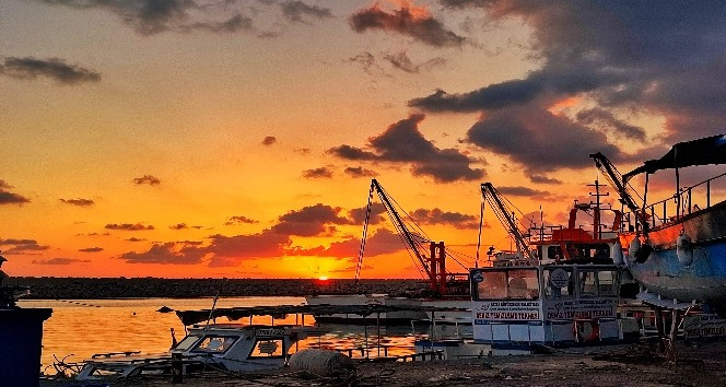 Hatay'da gün batımının geceyi kızıla boyaması kartpostallık görüntüler oluşturdu. Güneşin masallara konu olan hali görenleri büyüledi.