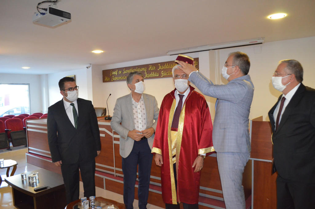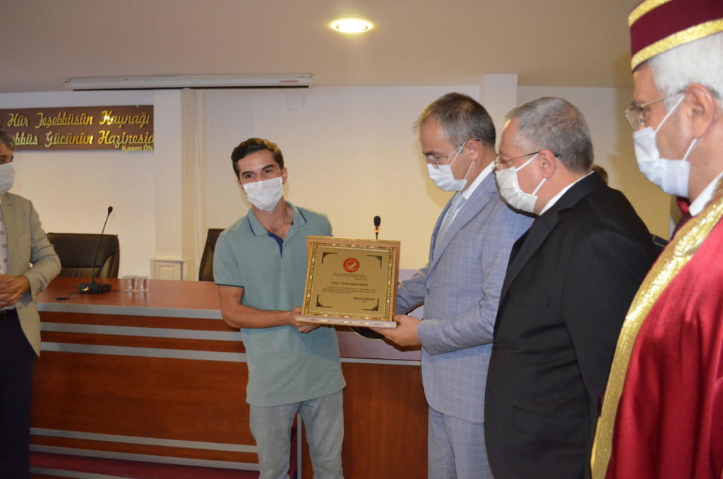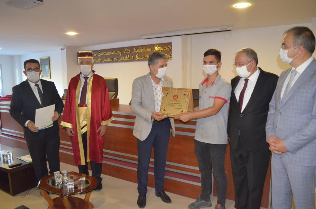 Hatay’da Yılın kalfası seçilen Yavuz Selim Kara ile yılın çırağı seçilen Basri Alkan Benden’e plaketleri Belediye Başkanı Ayhan Yavuz tarafından verildi.