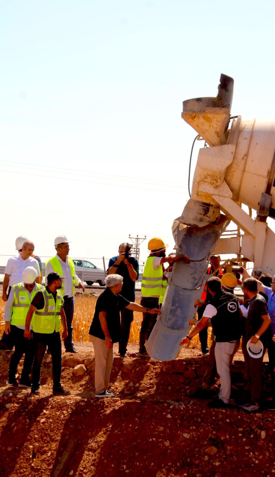 Reyhanlı Barajına su getirecek olan 36 km uzunluğundaki Karasu Derivasyon kanalının kaplama çalışmalarını takip eden heyet, daha sonra kanalın ilk harcını birlikte döktüler. Heyet, T2 tünelinin kaplama çalışmalarınıda izlediler.