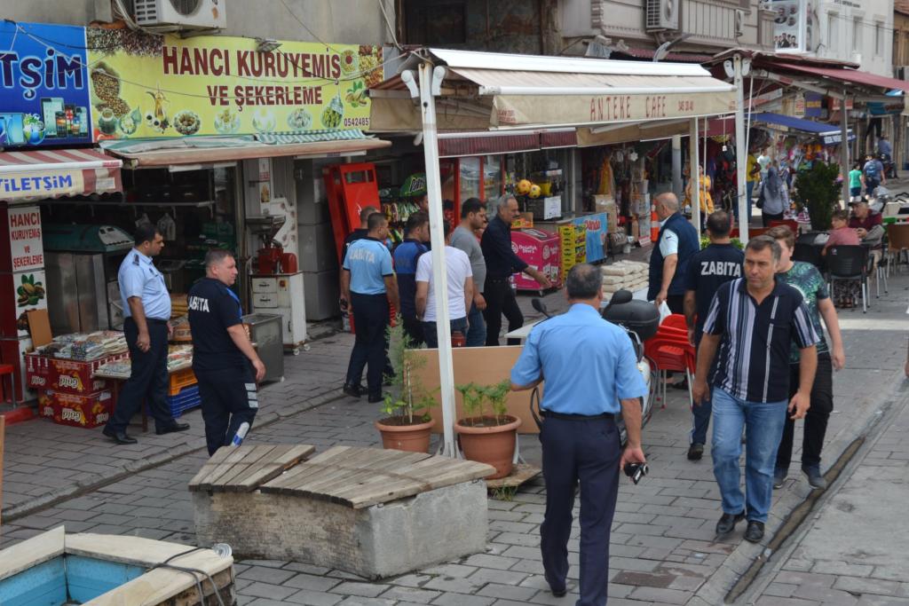 Kırıkhan Belediyesi Zabıta Müdürlüğü ekipleri, Kanatlı Caddesi ve araç trafiğine kapalı olan Beyazıd Caddesi üzerinde yol ve kaldırım işgali yapan esnaflara yönelik denetim çalışması yaptı.