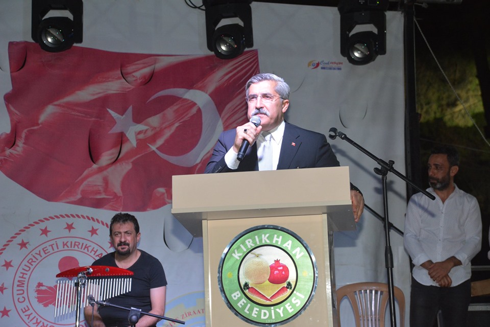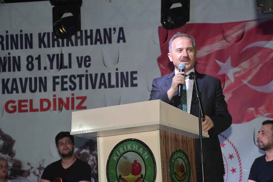 Türkiye’nin neresine gittiğinizde, Kırıkhan dediğinizde insanlar iki şey söyler. Bir tanesi dişçisi 2.si kavunu. Biz inşallah arkasından Havucu getiriyoruz, Ciğeri de getiriyoruz. Kırıkhan kendisiyle beraber markasıyla inşallah bundan sonra Türkiye’nin dört bir yanında anılmaya devam edecek. Buradan şu sözü de veriyorum. Biz “Kırıkhan’a Gel Ciğerimi Ye” demiştik. 1. Festivalimizi yaptık. Mayıs ayında hava muhalefeti dolayısıyla 2. Yi yapamadık. Bu coşkuyu gördükten sonra Ekim ayı içerisinde Allah (c.c.) nasip ederse “ Kırıkhan’a Gel, Ciğerimi Ye” festivalinin 2.sini şimdiden size müjdeliyorum.