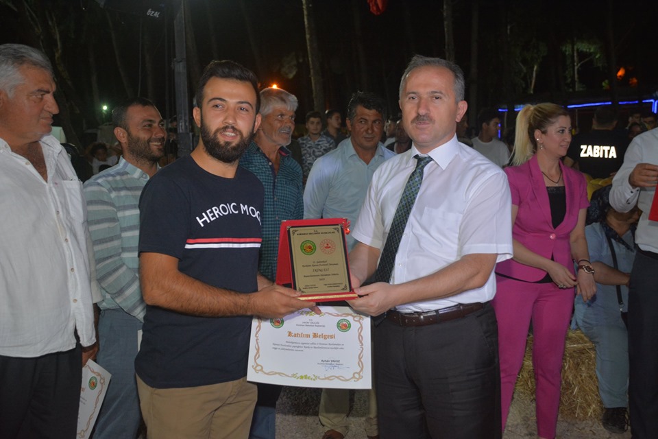İlçe tarım müdürü Ali Temizkan’ın Kavunla ilgili konuşmasının ardından düzenlenen kavun yarışmasına katılım sağlayan 15 Kavun üreticisine katılım belgeleri verildi. Belgelerin verilmesiyle birlikte yarışmada 1. Olan Kavun üreticisi Hatice Damlı, 2. Olan Güner Ceritoğlu ve 3. Olan Serdar Abalı’ya ödülleri verildi.