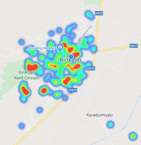 “Hayat Eve Sığar” uygulamasında 7 Kasım  itibariyle Kırıkhan’ın  vaka yoğunluk haritasında şehir merkezinin bir çok bölgesini kırmızıya büründü.