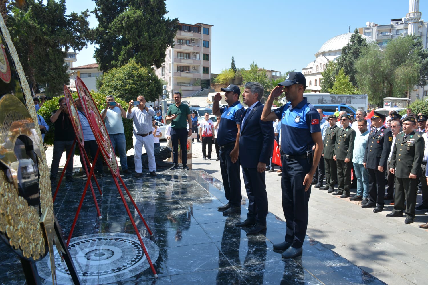 Kortej yürüyüşünün ardından Atatürk Anıtı önünde tören yapıldı. Burada düzenlen tören Kaymakamlık, Garnizon Komutanlığı ve Kırıkhan Belediyesinin Çelenklerinin Anıta konulması, saygı duruşunun yapılıp İstiklal Marşının okunması ile başladı.