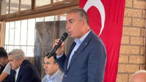 Sıkıntılarımız var, problemlerimiz var; yollarımız kötü, sularımız akmıyor, kalacak konut sıkıntımız var, konteynerlerde yerleşme sorunumuz var, ticarethanelerde problemlerimiz var. Bunların hepsini biliyoruz ve bugün de bunun için buradayız. Hep birlikte el ele, sabır ve anlayışla ilçemizi yeniden inşa edeceğiz." dedi.