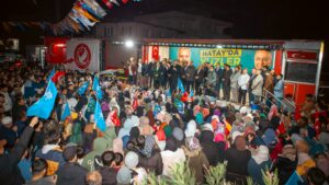 Hatay’ı yerel seçim sürecinde baştan sona dolaştığını, 7’den 77’ye her yaştan vatandaşla, her meslekten işletmeci ve işçi ile bir araya geldiğini kaydeden Öntürk; “Kadınlarımız üretime katılmak, evinin geçimini sağlamak istiyor. Gençlerimiz ders çalışacakları ve sosyalleşecekleri alanlar ve iş istiyor. İşletmecilerimiz düzgün bir şehir istiyor. Vatandaş evinin suyu, yolu, altyapısı yapılsın istiyor. 10 yıldır bu kente hizmet üretmeyen bir beceriksiz yapı var. Ancak bu vatandaş artık laf duymaktan bıktı ve hizmet istiyor. Hatay’ı ayağa kaldıracak olan yapının Cumhur İttifakı olduğunu biliyor. İnşallah 31 Mart’ta biz göreve geldiğimizde sorunları kısa sürede kalıcı olarak çözeceğiz. Hatay’ın nasıl ayağa kaldırılacağını ve yönetileceğini de herkese göstereceğiz” dedi.