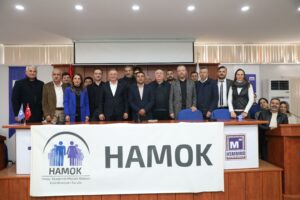 Yapılacak yerel seçimler öncesi Antakya’da Hatay Akademik Mesleki Odaları Koordinasyon Kurulunu (HAMOK) ziyaret eden HBB Başkanı Savaş, ardından yeni Hatay Barosu Başkanı Erhan Nizamoğlu, eski Baro Başkanı Cihat Açıkalın ve hukukçularla bir araya geldi.