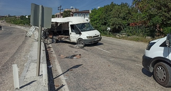 Samandağ'da, kontrolden çıkan minibüs önce yayaya ardından direğe çarptı. Kazada sürücü hafif, yaya ise ağır şekilde yaralandı.