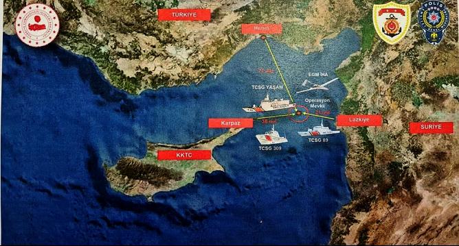 Sahil Güvenlik, Emniyet; Narkotik-Havacılık İHA-Özel Harekât birimlerinin Suriye açıklarında, uluslararası sularda gerçekleştirdiği operasyonla büyük bir başarıya imza atıldığını duyuran Bakan Soylu müdahale edilen gemide; bir buçuk tonun üzerinde esrar ele geçirildiğini kaydetti.