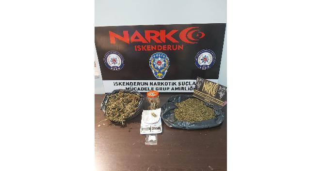İskenderun'da düzenlenen 2 ayrı asayiş ve uyuşturucu operasyonlarında 834 gram esrar, 1 adet ruhsatsız tabanca ile 1 adet hassas terazi ele geçirildi. 2 kişi gözaltına alındı.