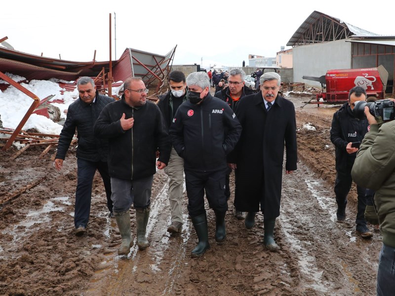 Mahalle muhtarları ile gerçekleşen toplantının ardından beraberindeki heyet ile birlikte yoğun kar yağışından etkilenen mahallelerimizde incelemelerde bulunan Vali Doğan, bazı ahırlarını çökmesi sonucu hayvanları telef olan vatandaşlarımıza geçmiş olsun dileklerini ileterek, bölgenin normal yaşama dönmesi için ilgili kurumların gece gündüz çalıştığını, devletimizin her zaman yanlarında olduğunu vurguladı.