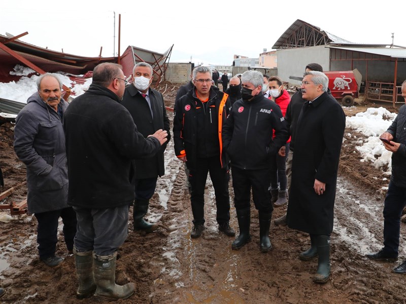 Mahalle muhtarları ile gerçekleşen toplantının ardından beraberindeki heyet ile birlikte yoğun kar yağışından etkilenen mahallelerimizde incelemelerde bulunan Vali Doğan, bazı ahırlarını çökmesi sonucu hayvanları telef olan vatandaşlarımıza geçmiş olsun dileklerini ileterek, bölgenin normal yaşama dönmesi için ilgili kurumların gece gündüz çalıştığını, devletimizin her zaman yanlarında olduğunu vurguladı.