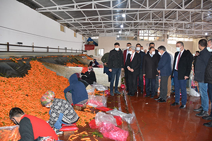 Milletvekili Hüseyin Yayman, tesisteki incelemelerin ardından yaptığı açıklamada, "Türkiye'de havuç üretimde 3. sıradayız. Kırıkhan havucu ile ilgili bizim başlattığımız coğrafi işaret, coğrafi marka süreci var. Bunun takipçisiyiz. Kırıkhan havucuna coğrafi işaretini alacağız. Burada çok önemli bir ürün var. Bir taraftan meyve olarak tüketiliyoruz bir taraftan yemek olarak, salata olarak tüketmekteyiz. İlaç, kozmetik sektöründe kullanılmakta. Cezeryesi tatlısı yapılmakta. Bir üründen ziyade havuç burada bir yaşam biçimi. Sadece sarı havuç değil, siyah havuçta var. Önemli ölçüde üretimi yapılıyor. Burada yaklaşık 22 bin dekarda havuç üretimi yapılıyor” dedi.